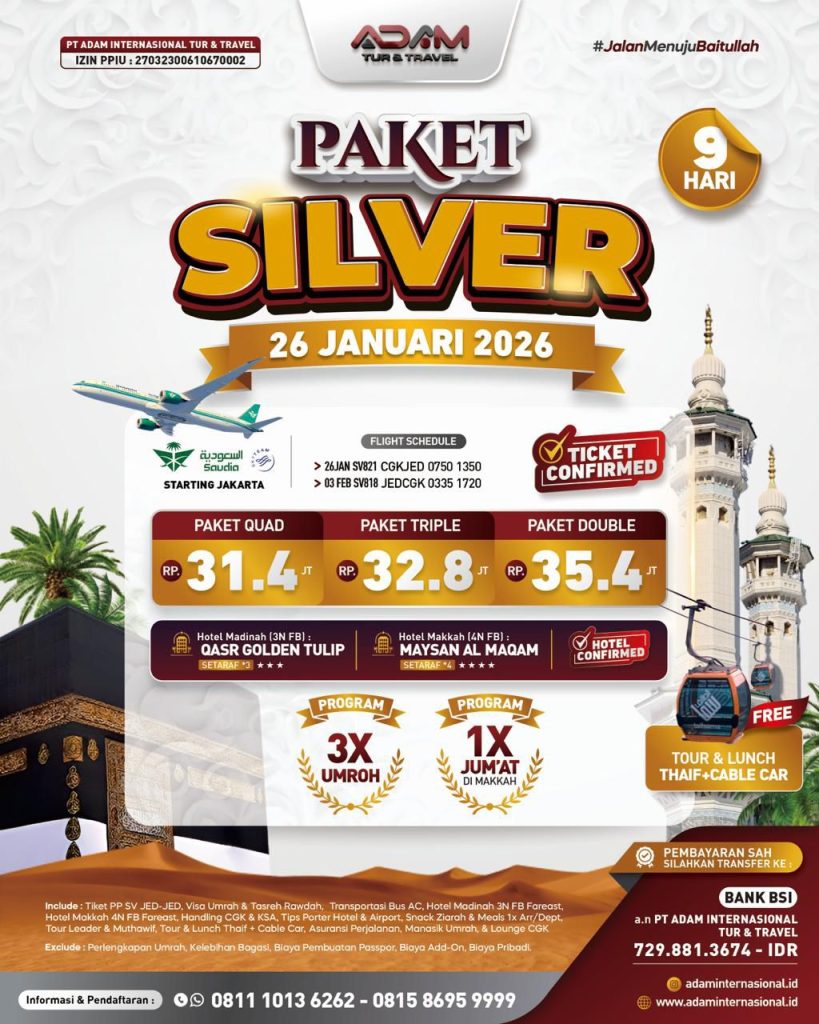 PT. Adam Internasional Tur & Travel berizin resmi dan terverifikasi di PPIU Kemenag dengan nomor: 27032300610670002