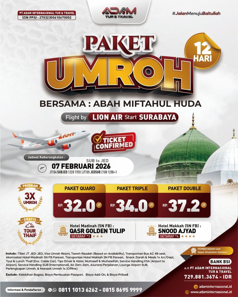 BAGUS SEKALI Berdasarkan 45 ulasan Diposting di Handris KopAmphuriTrustindex memverifikasi bahwa sumber asli ulasan adalah Google. 🕋 Travelnya amanah, fasilitas lengkap, pendamping umroh yg pro 🕋Diposting di Zul Agustino ZainalTrustindex memverifikasi bahwa sumber asli ulasan adalah Google. Adam Tur & Travel sangat luar biasa.. Pelayanan ok, staff²nya sangat ramah, kantornya sangat bersih dan nyaman, mau brangkat Umroh atau Haji lewat Adam Tur & Travel deh pokoknya..Diposting di Shinta Septianty STrustindex memverifikasi bahwa sumber asli ulasan adalah Google. Kalau mau Umrah bisa ke Adam Tur & Travel yaaaDiposting di Ardes Channel OfficialTrustindex memverifikasi bahwa sumber asli ulasan adalah Google. Selalu memuaskan, pelayanan yang luar biasa semoga selalu sukses dan semakin maju Jaya!! 💪💪💪Diposting di MeryTrustindex memverifikasi bahwa sumber asli ulasan adalah Google. Good service, friendly staff, provide umrah regular and plusDiposting di Mega ASTrustindex memverifikasi bahwa sumber asli ulasan adalah Google. Adam Internasional keren banyak diskon dan cashback ya