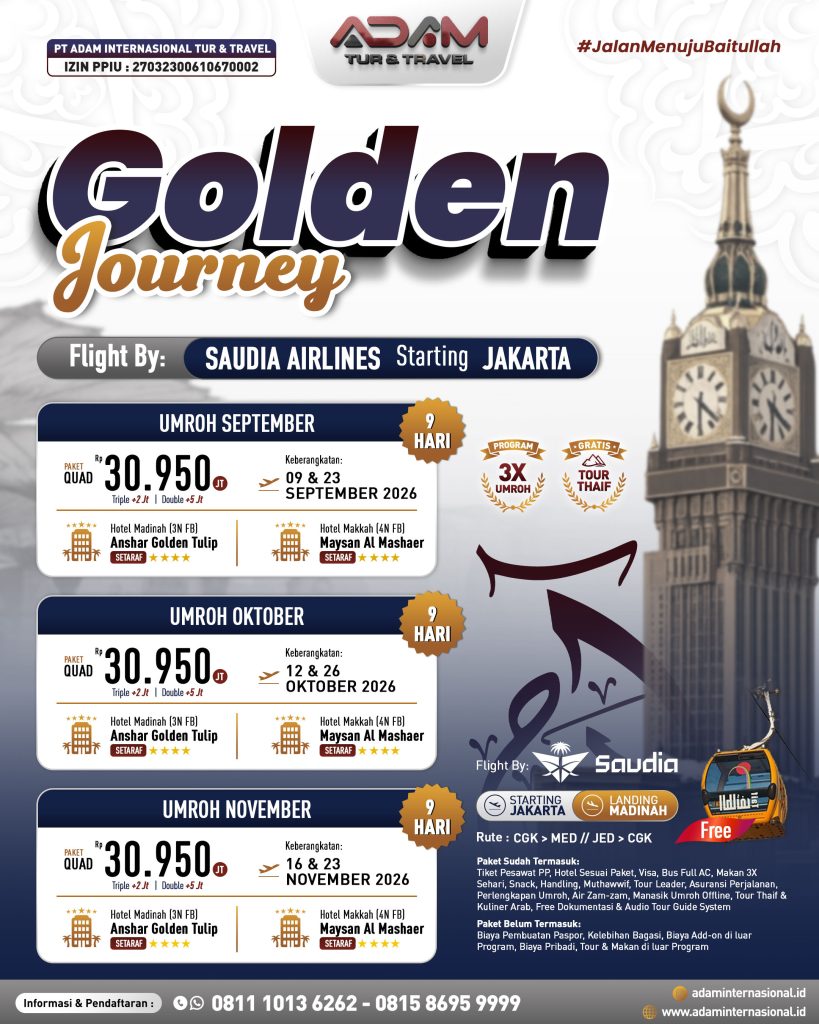 Perjalanan ibadah Anda dimulai hari ini. Pukul 08.00 WIB,