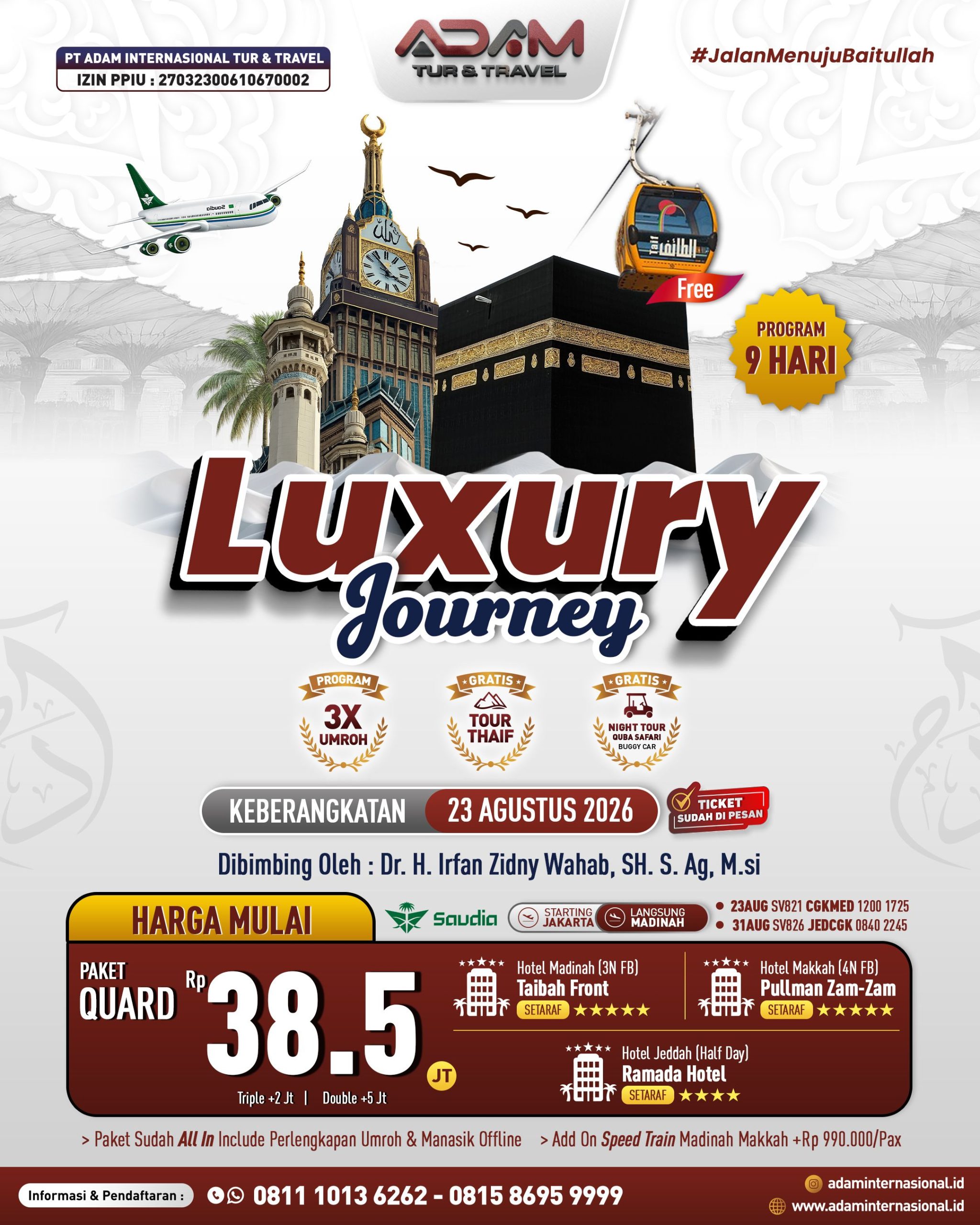 Lounge CGK, Asuransi Perjalanan, Manasik Umrah Offline 1x, Perlengkapan Umrah, Air Zam-Zam