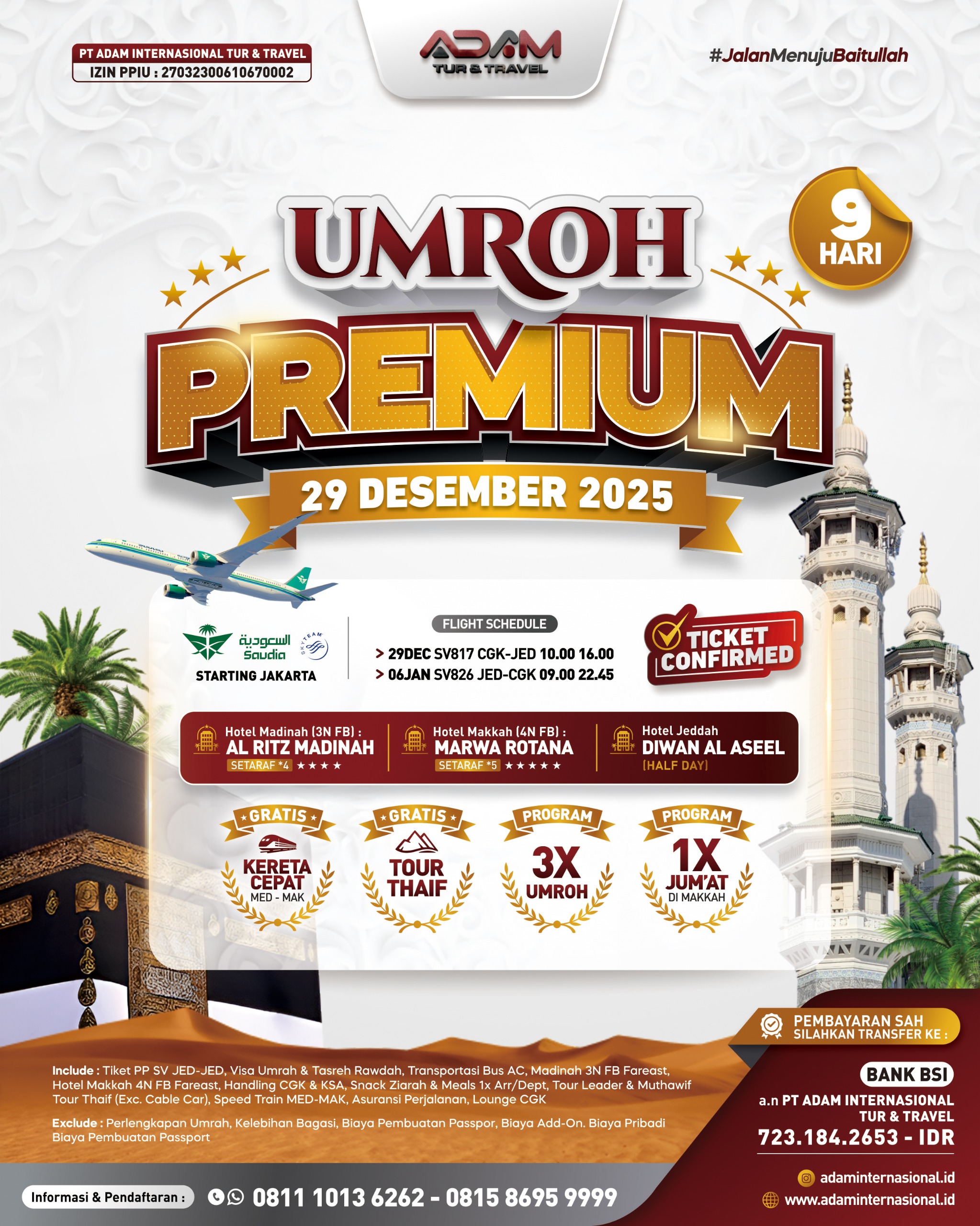 PAKET DOUBLE : Rp54.900.000/pax